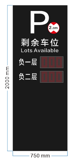 置于停車場(chǎng)入口或區(qū)域交叉口處,用于顯示歡迎信息及停車場(chǎng)內(nèi)部各區(qū)域的剩余車位信息,動(dòng)態(tài)信息發(fā)布。通過(guò)相應(yīng)標(biāo)識(shí)與文字組合實(shí)時(shí)顯示區(qū)域剩余車位信息,指引駕車者快速找到車場(chǎng)可停區(qū)域。